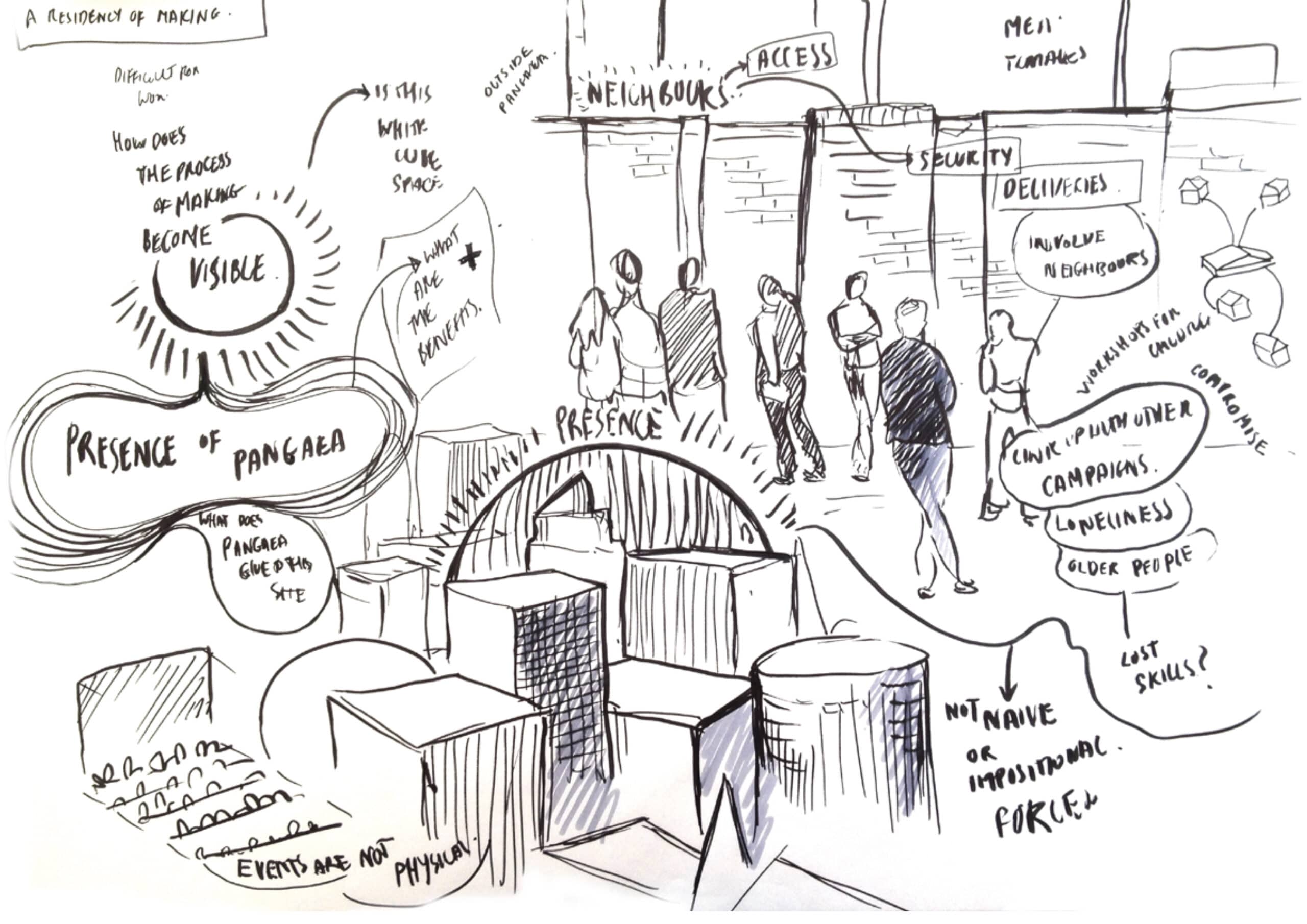 – Privileges the making process—making this accessible and a community resource. Exploring the inside/outside threshold of production space and how this border/edge can be optimised.